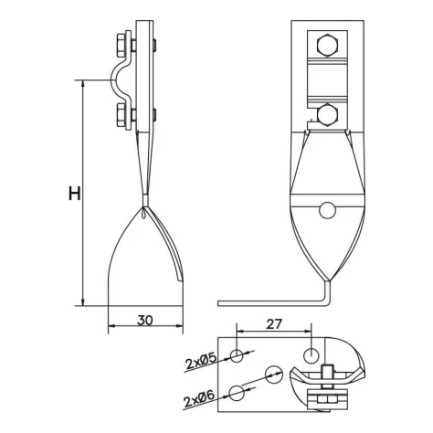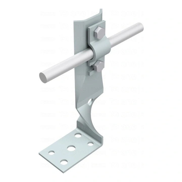 Winkelhalter mit Drehplatte H70 ist ein zuverlässiges Element der Blitzschutzanlage, das zur Führung von Blitzschutzdrähten auf Dächern und Wänden bestimmt ist. Dank der soliden Konstruktion aus elektrolytisch verzinktem Stahl gewährleistet er eine dauerhafte und sichere Befestigung von Rundleitern mit einem Durchmesser von Ø8–10 mm.