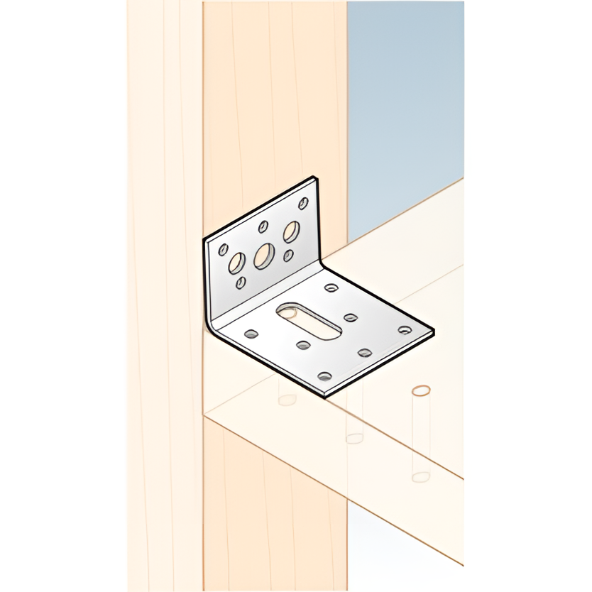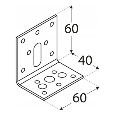 Verstellbarer Montagewinkel 60×40×60×2,5 mm ist ein robuster Winkelverbinder für professionelle Verbindungen in Holzkonstruktionen. Dank der Langlöcher ermöglicht er eine präzise Positionsregulierung der zu verbindenden Elemente, was die Montage von Balken mit rechteckigem oder quadratischem Querschnitt erheblich erleichtert und Dehnungsspannungen durch Holzfeuchteänderungen eliminiert.