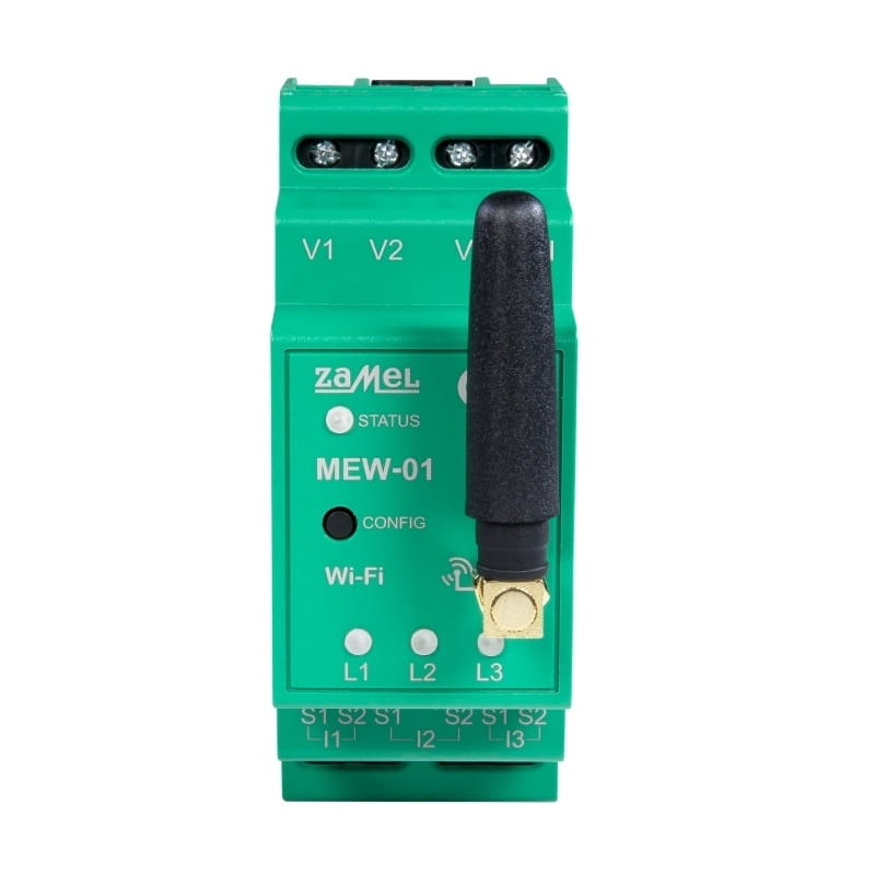 Der WI-FI Energiemonitor 3F+N bidirektionaler Zähler für Photovoltaik PV TYP: MEW-01 SUPLA der Marke ZAMEL ermöglicht die drahtlose Überwachung des Energieverbrauchs über ein Wi-Fi-Netzwerk. Es handelt sich um ein dreiphasiges Gerät, das im Verteilerkasten auf einer TH35-Schiene (DIN) installiert wird, ohne dass spezielle elektrische oder telekommunikationstechnische Installationen erforderlich sind.