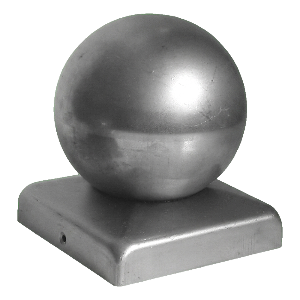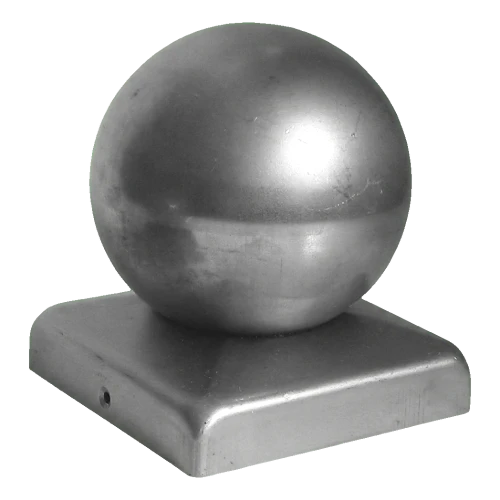 Zaunabdeckung aus Stahl 100×100 mm mit Zierkugel ø 80 – verzinkt