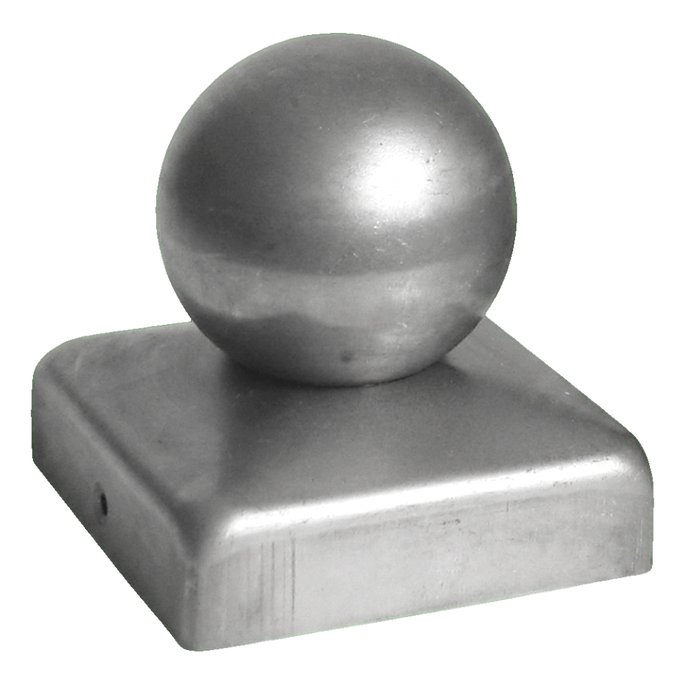 Zaunkappe aus Stahl 120×120 mm mit Zierknauf Ø 80 mm – roh