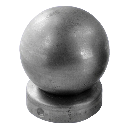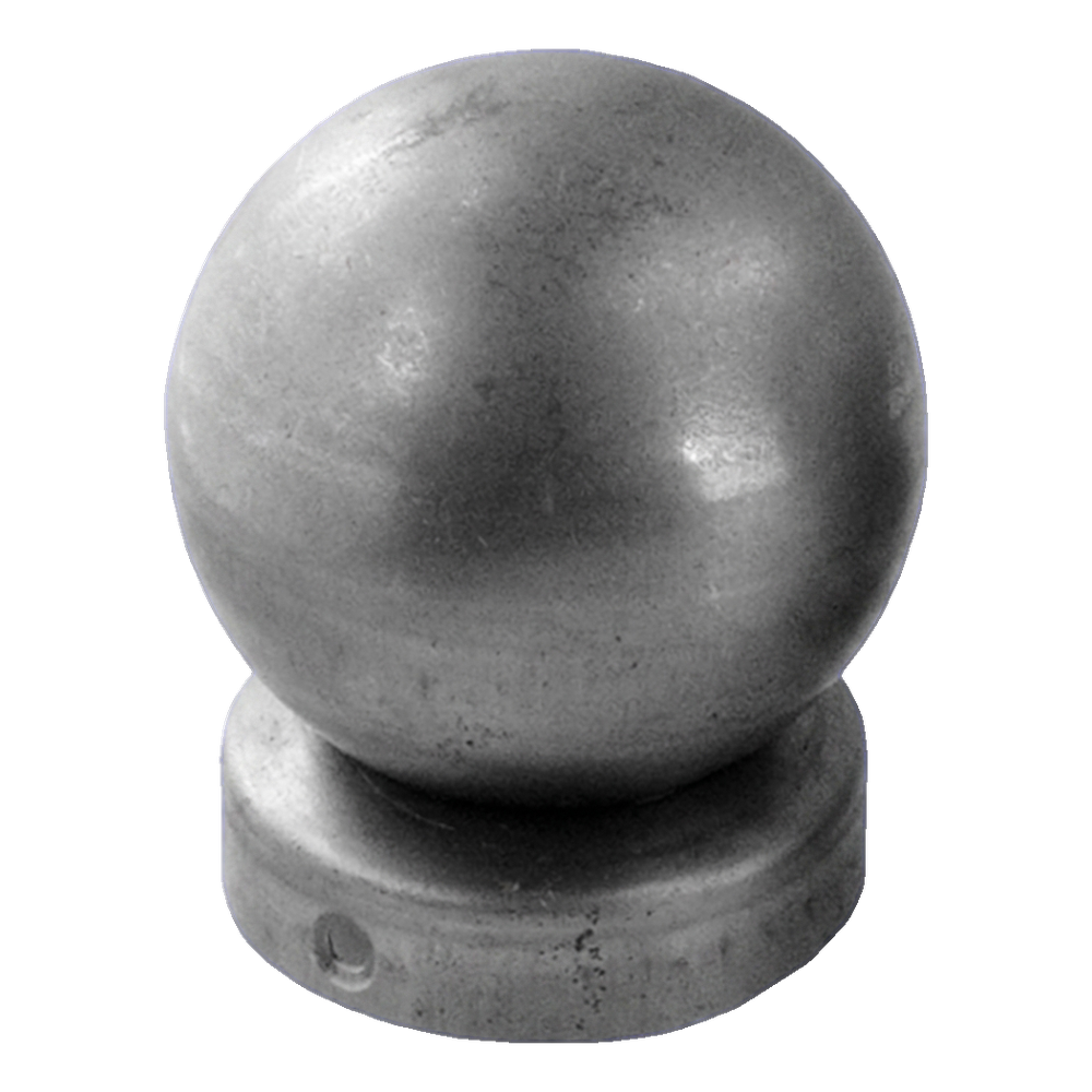 Zaunkappe aus Stahl mit Zierkugel für die Veredelung von Pfosten mit Durchmesser Ø 77 mm. Die Zierkugel mit Durchmesser Ø 60 mm verleiht dem Zaun ein ästhetisches, professionelles Aussehen und schützt gleichzeitig den Pfosten vor Korrosion durch Witterungseinflüsse. Das Produkt wird im rohen Zustand geliefert — zum Lackieren oder Verzinken in Eigenregie, was eine perfekte Farbabstimmung auf das jeweilige Projekt ermöglicht.