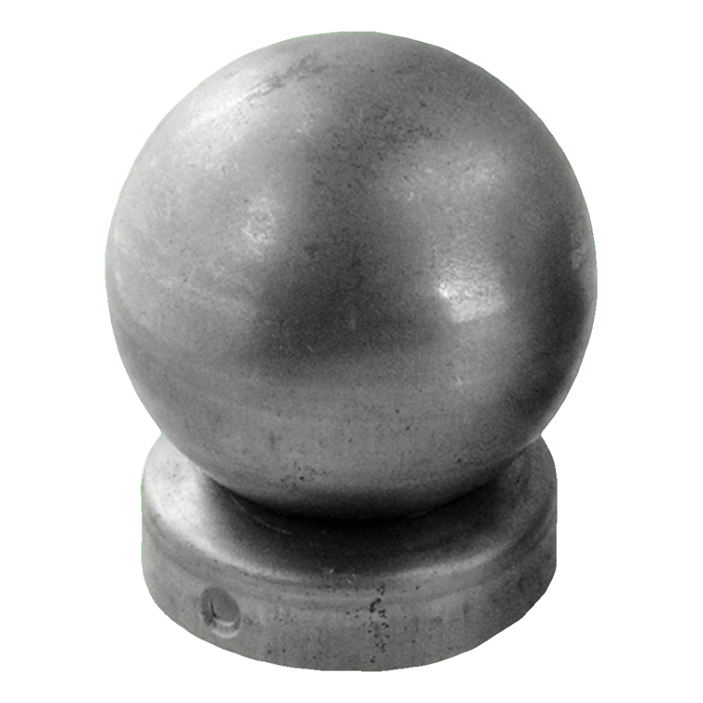 Stahlzaunkappe mit Zierknauf zur Montage auf runden Pfosten mit Durchmesser Ø 77 mm. Der elegante Knauf mit Durchmesser Ø 80 mm verleiht dem Zaun ein ästhetisches Finish und schützt gleichzeitig den Pfosten vor schädlichen Witterungseinflüssen — Regen, Schnee und Feuchtigkeit, die Korrosion beschleunigen.