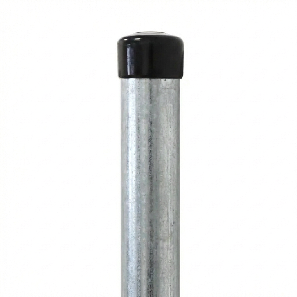 Das feuerverzinkte Stahlrohr erhält eine dauerhafte Zinkschicht, die eine wirksame Barriere gegen Rost und äußere Einflüsse bildet. Der obere Teil des Pfostens ist mit einer Kunststoff-Schutzkappe abgedeckt, die das Eindringen von Wasser, Schnee und Schmutz ins Rohrinnere verhindert – und damit die Lebensdauer des Produkts zusätzlich verlängert.
