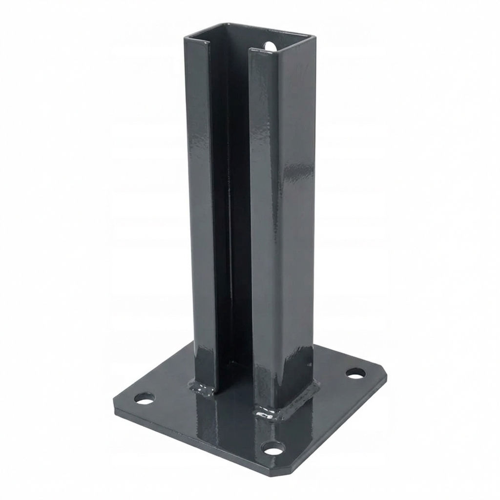 Zaunpfostenfuß 60x40 mm – galvanisch verzinkt und pulverbeschichtet RAL 7016