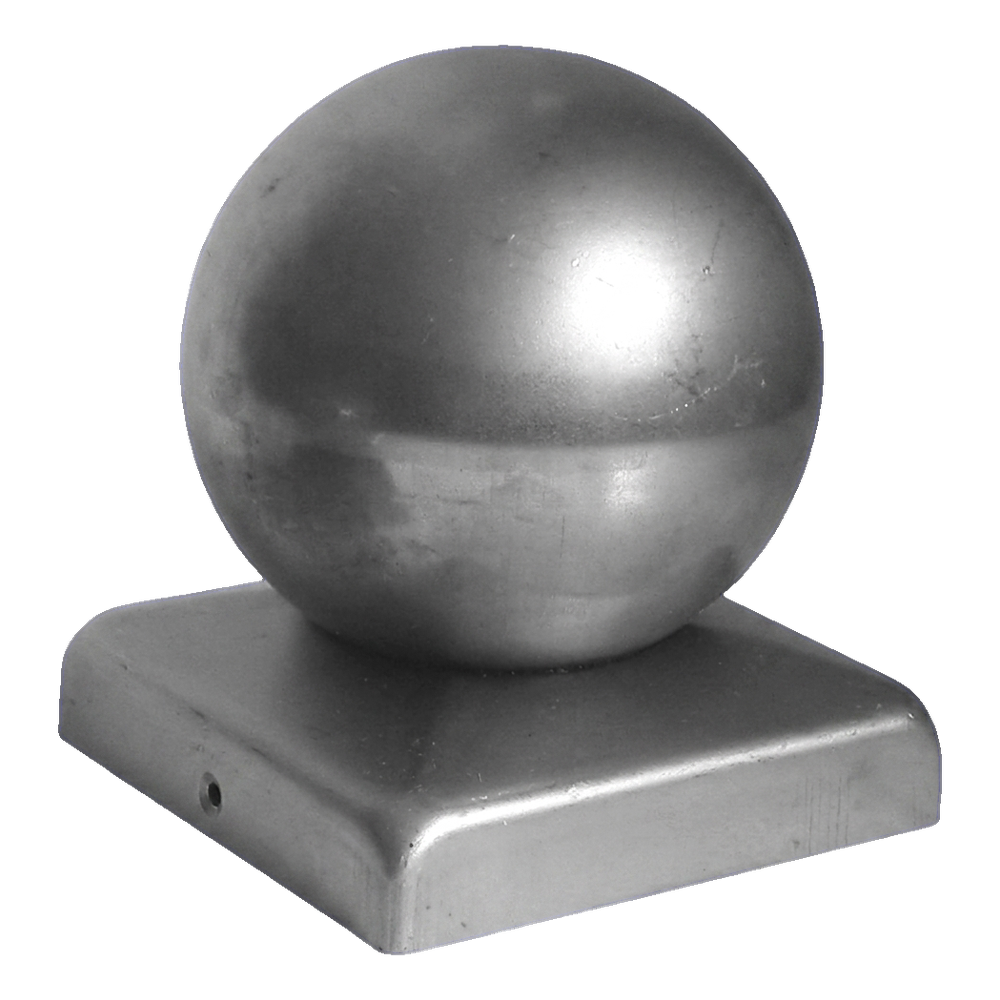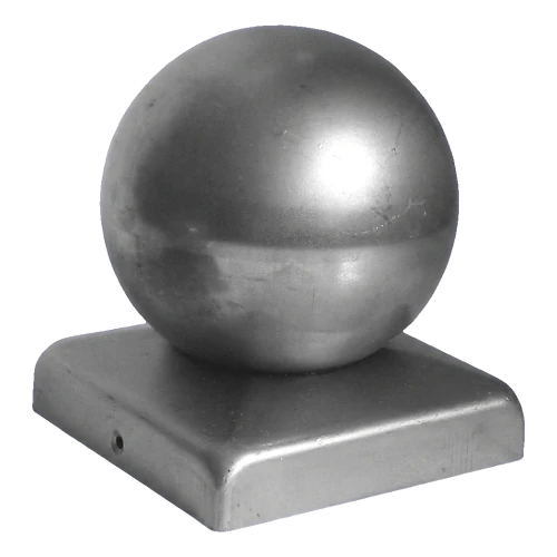 Stahl-Zaunstoß mit Dekorationskugel ist eine solide und ästhetische Pfostenabdeckung für quadratische Zaunpfosten mit Querschnitt 80×80 mm. Die Kugel mit Durchmesser ø 60 mm verleiht dem Zaun einen eleganten, repräsentativen Charakter und schützt gleichzeitig den Pfosten vor eindringendem Regenwasser und beschleunigter Korrosion.